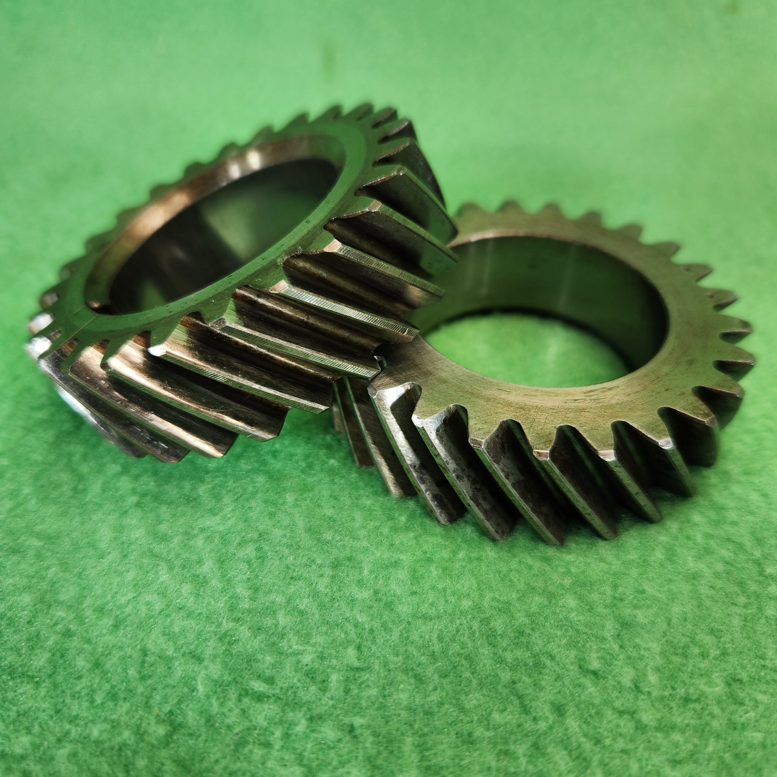 Volkswagen air-cooled 1300 1500 1600 crankshaft gear installation kits. We believe the parts are in usable condition but are not perfect. One of the steel gears has some staining and possible small pits. The other one has some dings on the face. The brass gears have a slight scuff on the top of the teeth. This probably won't affect anything but we wanted to point it out, you may want to dress them slightly with a file before use. All are genuine vintage German VW parts. What you see is what you get, so please look the pictures over and judge for yourself! AS WITH ANY ITEMS, NO RETURNS ACCEPTED. Please allow a couple of days to get items to the post office. Please let us know if you have any questions, and thanks for looking!