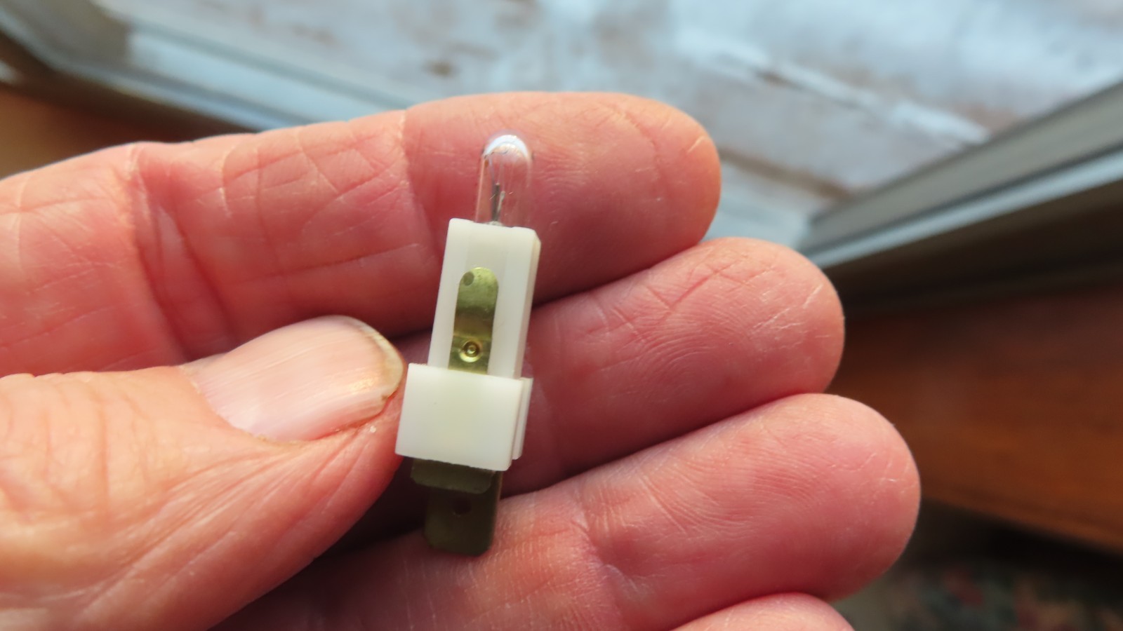Volvo 240 switch light socket with working bulb. Socket will fit various 240 switches. There are 2 different light sockets, black ones and white ones. These are white and are the larger size.