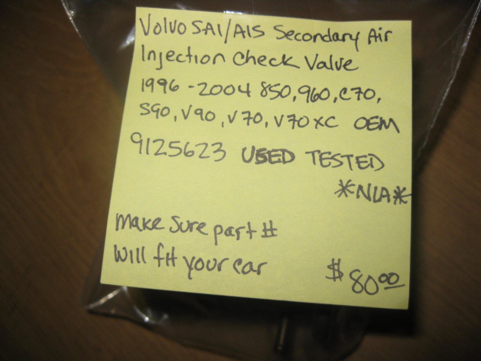 VOLVO 9125623 SAI/AIS Secondary Air Injection Check Valve 1996-04 *OEM USED*