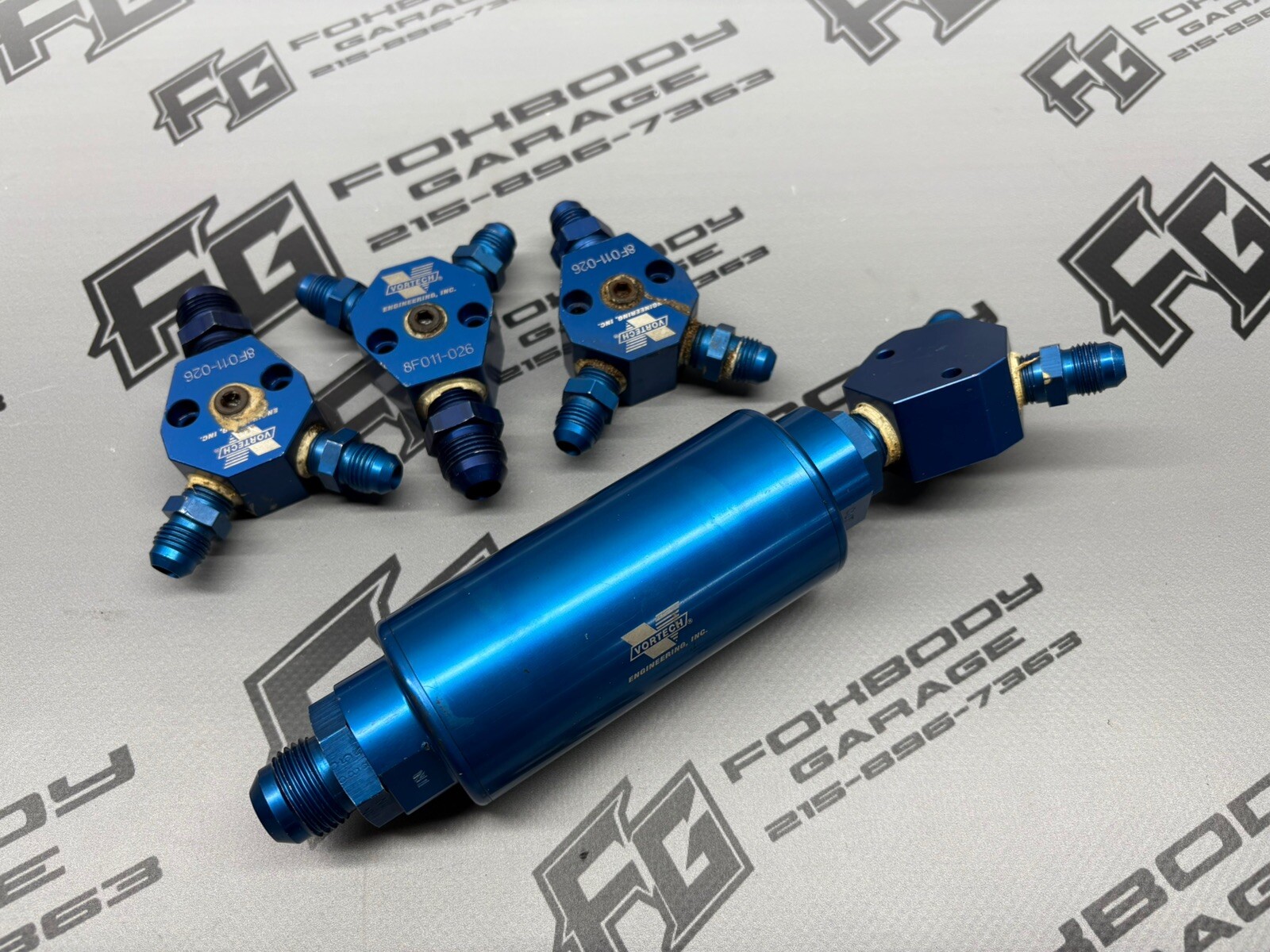 Up for sale is an assortment of VORTECH Fuel Fittings, Y blocks, and a fuel filter. There are some -8AN and -10AN fittings. Everything shown is in good condition and ready to be used on your project!! Thank You! The FoxBody Garage Mission Statement One part at a time, with you in mind. Here at The FoxBody Garage we strive to bring the highest of quality used parts. Focusing on the FoxBody Mustang community is our passion! We want to help start and finish every project you have! WARRANTY \\*\\* WE DO NOT OFFER A WARRANTY \\*\\* NO RETURNS, WARRANTIES AND OR GUARANTEES ON ANY ELECTRICAL, MECHANICAL, CLOCKS, RADIOS, LIGHTS, BULBS, HOSES, CONTROL SWITCHES, ALTERNATORS, FUSE BOXES, FUSES, MOTORS, STARTERS, DISTRIBUTORS, HARNESSES/PIGTAILS, ELECTRICAL PARTS, CARBURETORS, PUMPS, EGR’S, TENSIONERS, SWITCHES, INSTRUMENT CLUSTERS AND OR ENGINE PARTS. \\*\\* ITEMS THAT ARE DESCRIBED AS -- "PARTS ONLY", "AS IS", AND OR "UNTESTED" ARE NOT RETURNABLE. \*\*WE ARE NOT LIABLE FOR ANY LABOR COSTS ASSOCIATED WITH THE INSTALLATION OR REMOVAL OF ANY PARTS THAT WE SELL. IF UNSURE PLEASE VERIFY WITH A DEALER OR OTHER RELIABLE SOURCE. SHIPPING \\*\\* SHIPPING TIME IS USUALLY WITHIN 3 BUSINESS DAYS. EXCLUDING HOLIDAYS. \\*\\* ALL MY ITEMS ARE CAREFULLY WRAPPED TO ENSURE SAFE TRAVEL. RETURNS \\*\\* WE NORMALLY DO NOT ACCEPT RETURNS IN THE CASES THAT WE DO THERE WILL BE A 15% RESTOCKING FEE TO ALL ITEMS RETURNED UNLESS DESCRIPTION IS VASTLY DIFFERENT THAN ITEM RECEIVED AND MINUS THE ORIGINAL SHIPPING COSTS, BUYER WILL BE RESPONSIBLE FOR RETURN SHIPPING. \\*\\* RETURNS ARE CASE BY CASE. FEEDBACK FEEDBACK IS GREATLY APPRECIATED!!! FEEDBACK NOT ONLY HELPS US BUT HELPS YOU AS WELL AS A BUYER. WE ARE THANKFUL FOR ALL OF OUR EXISTING, NEW, AND POTENTIAL CUSTOMERS!!
