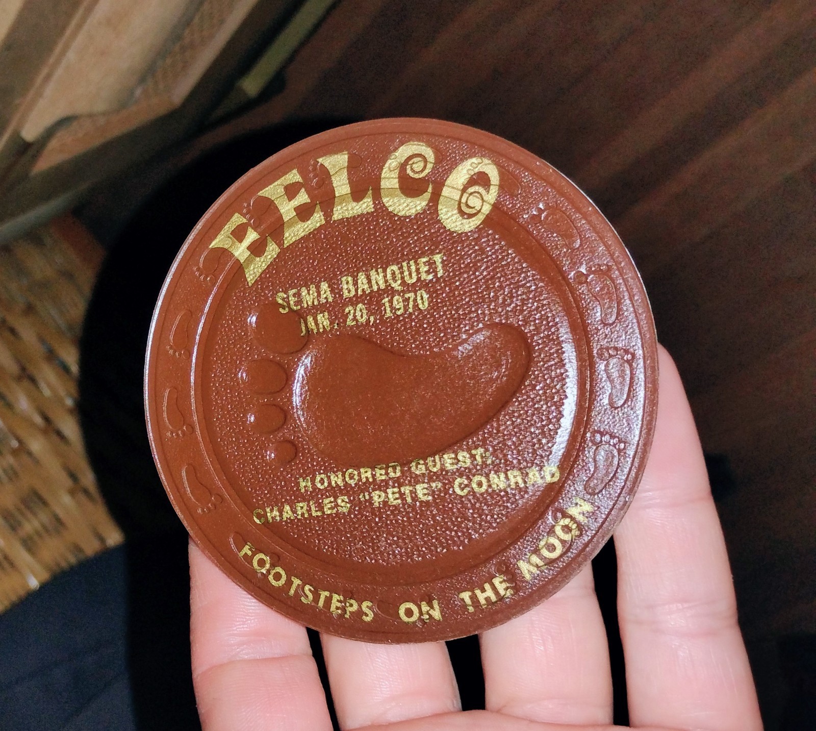Vtg 70s Bar Coaster Charles Pete Conrad Astronaut FOOTSTEPS ON THE MOON EELCO