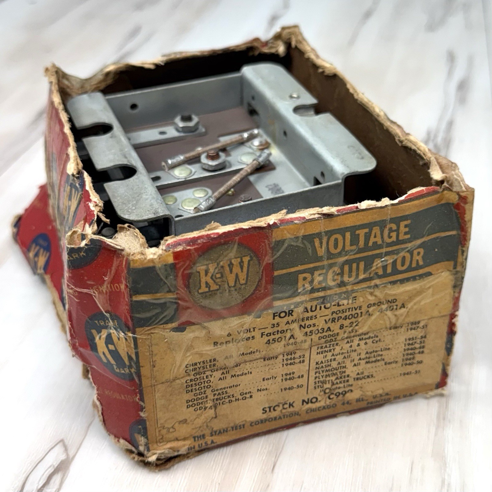 VTG Stan-Test K-W Auto Voltage Regulator 6V 35amp for VRP4001A 4401A 4501A 4503A Pre-owned condition. Unsure if this has ever been installed in a vehicle before. Includes original box, but box is disintegrating. Please carefully inspect photos for full condition and item details.