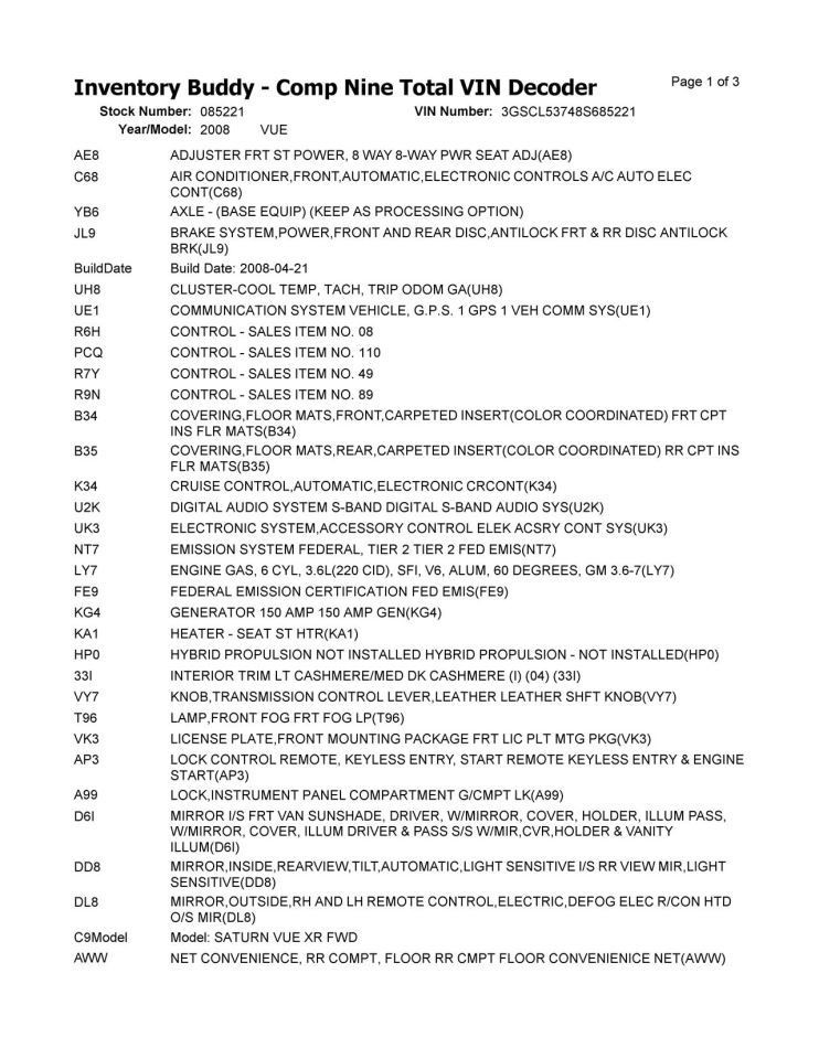 - Donor VIN: 3GSCL53748S685221