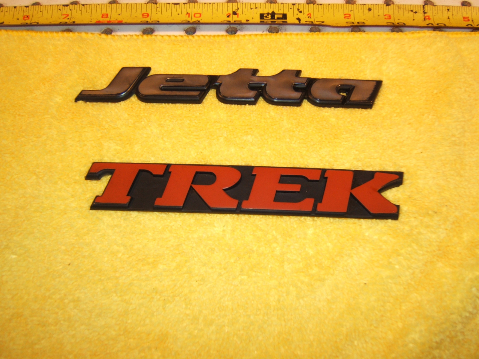 ****Thank you for visiting mb-vintage-world! We are proud of our great personal service, products & fast shipping. Our goal is to provide you with exceptional service & an easy & hassle free experience. Have questions? feel free to message us****.**********Business hours: Mon-Fri: 10:30am - 5:00pm PST****California / USA****Item(s) Description****Copyright protected** You are looking at a VW Jetta 1997 TERK edition sedan silver / Black / Red Plastic trunk lid**Genuine VW** OEM used 1 set of 2 Emblems.Comes as 1 set of 2 Emblems only per purchase. Came off 1997 VW Jetta sedan US model.The emblems will need to be re-glued by some kind of adhesive when installing them. **These are used parts with imperfections, wearing silver / red paint on the emblem and light scratches as seen in the pictures.**These parts come with a 30 day limited warranty. Free Economy Shipping in the USA Only. Please allow up to 1 to 2 business days for the item to be shipped. Usual transit time from 5-7 days, it depends on destination. (Please ensure that the shipping address you provide at checkout and pay pal is accurate to insure correct delivery for the package (s). Serious buyers only. We do not charge any handling fees or any other fees unless stated (domestic shipping). International handling fees may apply. Please note that we do our best to describe most damage, wear and imperfections on the parts. If you the buyer are not happy with an item, please see our return policy. We do not do partial refunds but we do want every buyer to be happy with their purchase. Please read the above for the detailed description of the item. Thank you & Kind Regards. If payment isn't received within this time period the order will be revoked. We are required to collect 8.5% sales tax from California residents which will be added at the checkout. This tax applies only to item purchased, not shipping. All other states no tax applies. All local pickups and deliveries within the state of California we are required to collect a sales tax of 9.5% which will be added on at the checkout. We do not charge any handling or any other charges and they are set at the lowest. We ship items as fast as we can, within 24 hours. Orders usually arrive in the time estimated by the carrier but may take longer in some cases depending on USPS , UPS , Fed Ex delivery schedule. Please be aware sometimes and especially in the holiday season the shipping carrier might take longer than the estimated business days to deliver the item. Items are professionally packaged to guarantee the safe arrival of the item and shipment to the address provided to us. All items overweight will be shipped terminal to terminal via heavy freight company. \#\# **We ship worldwide. Handling charges apply for certain countries or certain items. Some large items cannot be shipped due to their size/weight and high shipping costs. Please do not mistake customs charges for extra shipping charges. It is not up to the seller for customs charges or delays. Only large or heavy items are eligible for delivery for a fee with in the specified area and cost as stated in the item description. \#\# We want your item to arrive promptly and safely. Our store professionals use first-quality materials to pack the items with care. There are rare occasions where an item is lost or sustains damage during shipment. You must contact us within 48 hours of receiving the damaged item. Please retain all packaging & provide photos of the packaging and damage. The claims process takes approximately 12-49 business days. Once the claim is approved & paid, we will issue your payment. Our liability, without declared value coverage, shall not exceed $200. \# Returns \#\# Mb-vintage-world is committed to providing 100% customer satisfaction. If for any reason you are not completely satisfied with our parts, you may return within 30 days with in receiving the item for a full refund ( less shipping charges ) or for exchange / merchandise credit. Most of the 'Buy it Now' items have a 30 day return policy, unless otherwise noted, & should be in working condition or otherwise stated. If an item does not work due to being faulty, not to customer error or misuse, it will be refunded either for merchandise credit or a refund. Customers are responsible for shipping the item back. Shipping charges may not be refunded. We do not cover labor costs or shop fees, its up to the buyer to do so. We try to make our customers happy & provide the best customer service. We combine shipping for customers upon their request with no extra cost. **Feedback** **If you have any problems or concerns whatever with your order or products, please message us and give us a chance to assist you before you leave any feedback.** **We believe we can produce a positive outcome to any situation and will work hard to earn your praise.** **If you would like to help support & grow our family operated store and the transaction was satisfactory, It is very import to give us a 5 star rating if possible, thank you so much for your support and time. All winning bidders / buyers must pay for the items within 7 business days after the winning of the items. Otherwise, please contact us to let us know if there are any problems we can help resolve. Once we receive a good feedback, we would be happy to do the same. All descriptions of the item are to the best of our knowledge. If anyone has any input or there is an error in the listing please feel free to contact us. Please keep in mind that most of the items we sell are in used condition or re-manufactured. We strive to sell the best used parts.** **\\# Regarding unresolved problems. Mb-vintage-world customer service. Mb-vintage-world makes no express or implied warranties or representations regarding the condition or suitability of the goods and to the extent allowed by law, specifically disclaims any express or implied warranties, including but not limited to & warranty of merchant ability of fitness for purpose