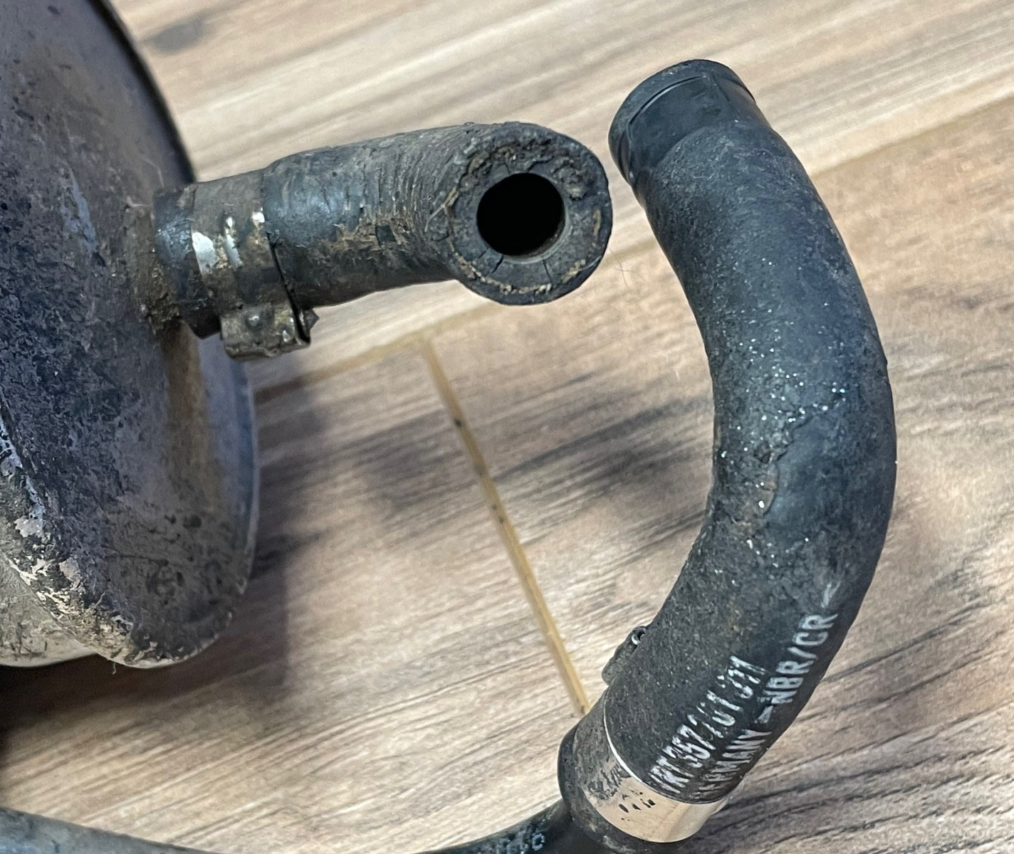 Original VW Cabriolet Fuel filter bracket, damper ring and fuel lines/hoses, made in Germany. Fits 1990-1993 VW Cabriolet with Digifant fuel injection. Includes the following VW part numbers: 155 201 218, inlet pipe,hose assy from pump to filter 357 201 311, outlet hose from filter 155 201 515 A, fuel filter mounting bracket 155 201 533, fuel filter bracket rubber damping ring Removed from a 1992 VW Cabriolet in the mid 1990s and stored indoors since then. I assume the fuel filter included is junk, you're really buying this for the hoses and brackets as those are no longer available from VW. Filter is included just to keep all the parts together, you'll want to install a new filter.