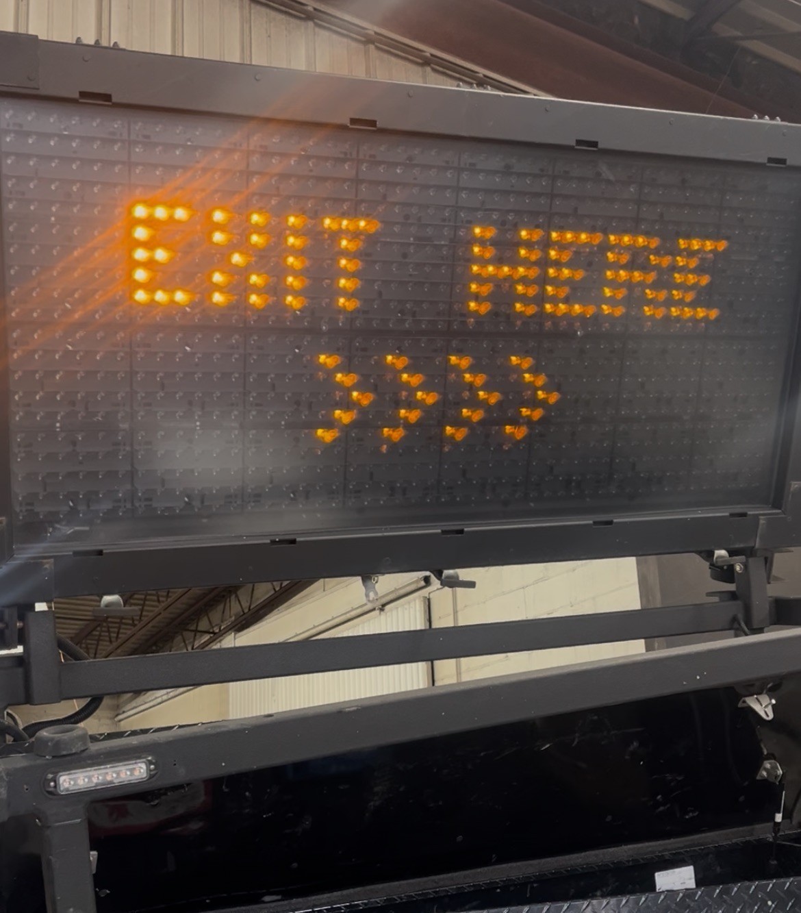 USED MESSAGE BOARD FROM 2022 SILVERADO 2500HD TRUCK. WORKS GOOD . EVERYTHING INCLUDED FOR HOOKUP .LOAD ASSISTANCE. WILL SECURE ON PALLET FOR SHIPPING INITIATED BY BUYER. ### Wanco Truck Mount Message Board Sign, Arrow Board, and Full Graphic Display WVMBM Full matrix display • 10" default font, variable font sizes, preprogrammed bold arrows • Integrated power-tilt frame with electric actuator • Color LCD touchscreen controller with continuous message preview Truck-Mount Message Signs offer the advantages of our full-matrix signs packed into a smaller unit. Two models allow for mounting over the cab of a work truck with an integral electrically operated tilt-frame. Signs include preprogrammed messages, graphics, and extra-bold arrow patterns. Wanco’s new touchscreen controller is included. ### Features: - Full-matrix display shows text, graphics or both - Preprogrammed extra-bold arrows - Super-bright high-efficiency LED technology - Touchscreen controller, no laptop required - Continuous message preview on controller - Energy-efficient operation - RF immunity