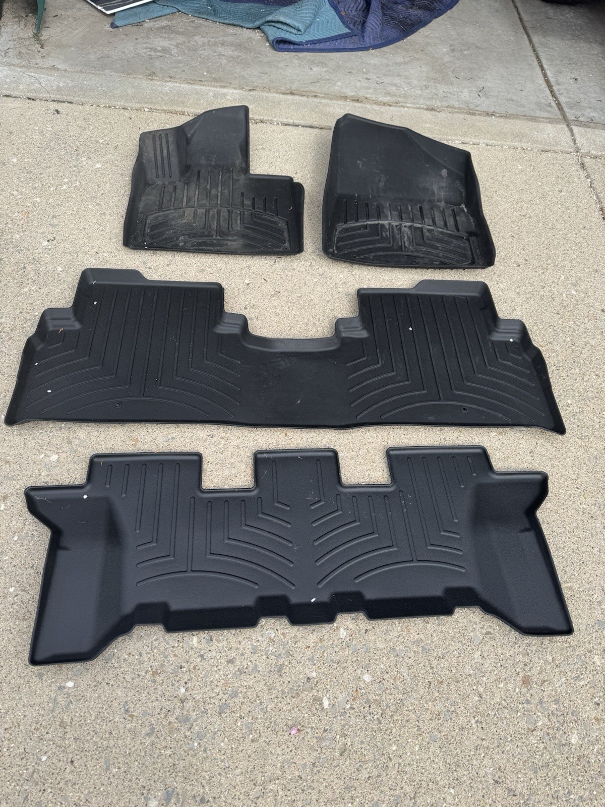 **Full set (all three rows) of WeatherTech HD floor liners for a 2020 Kia Sorento (May fit older models back to 2016). Condition is used. Please see pictures. Sold as is. Listed on multiple platforms.**