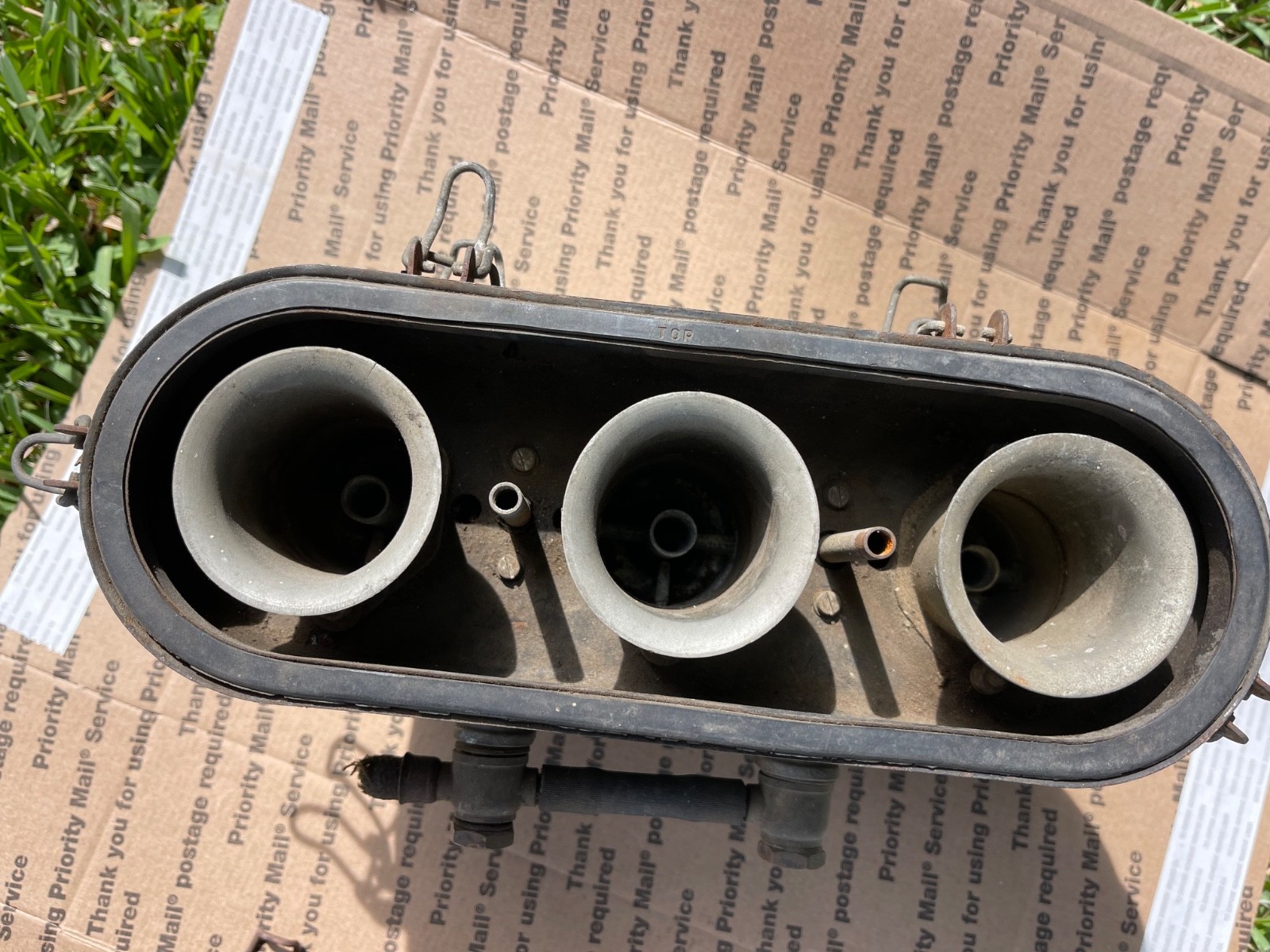 This Italian-made carburetor was designed for air-cooled applications, etc. Also, included are two air cleaner metal bases with snap on clips. Please see photos for overall condition since they are being sold in as is condition. Thank you and please feel free to ask questions.