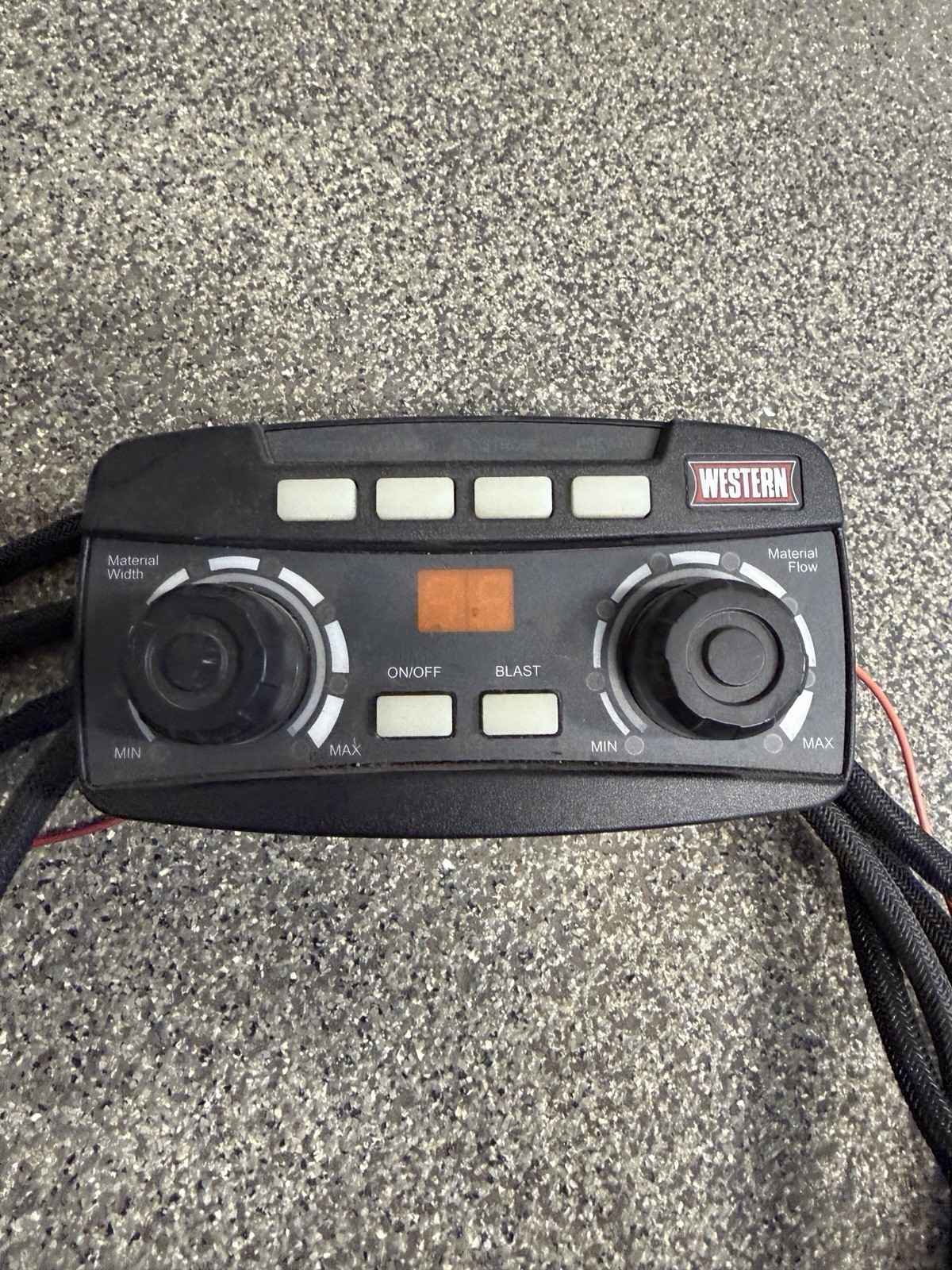 This is the dual knob Spreader Controller (cab Control) 99534 with Western wiring harness 69902. Has light wear and tear but is in excellent used working condition.