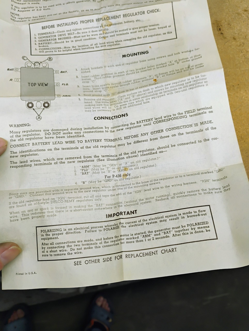 **NORS****Other****Voltage Regulator****P13** **Made in****USA** **------------------------------------------------------------------** **Please look over the images carefully, as they provide the best description of the exact part you will receive. Please do your own due diligence to ensure this part is correct for your application before purchase.Please look over the images carefully, as they provide the best description of the exact part you will receive. Please do your own due diligence to ensure this part is correct for your application before purchase.** **------------------------------------------------------------------** **Fuel your passion for classic cars.** Find authentic, Made in the USA vintage auto parts here. We specialize in NOS (New Old Stock) parts - unused treasures from closed auto parts stores and manufacturers, perfect for your restoration or classic car. Parts are "New Other" unless noted, meaning new and unused, but packaging may be open and show signs of age. **What to Expect** Each part is carefully inspected and photographed to provide you with an accurate representation of its condition. We use detailed descriptions and multiple images so you can make informed decisions. While most parts are new, their packaging may have been opened for inspection or photography. Boxes may be torn, missing, or show signs of wear. **Important Notes** - **Fitment:** We strive for accuracy, but our fitment information is based on older catalogs and may contain errors. Please do your own due diligence and research the item yourself to make sure it's the correct part for your application **BEFORE** purchase. - **Returns:** We accept returns on defective items. Please double-check compatibility before purchasing, as we cannot accept returns for misordered parts. - **Completeness:** We do our best to ensure all parts are complete, but due to their age, some small components like gaskets may be missing or brittle, cotter pins, or nuts may be missing. - **No Warranty:** We do not offer a warranty, expressed or implied. Any existing manufacturer warranty is between you and the manufacturer. - **No Advice:** We are not mechanics and cannot provide repair or installation advice.