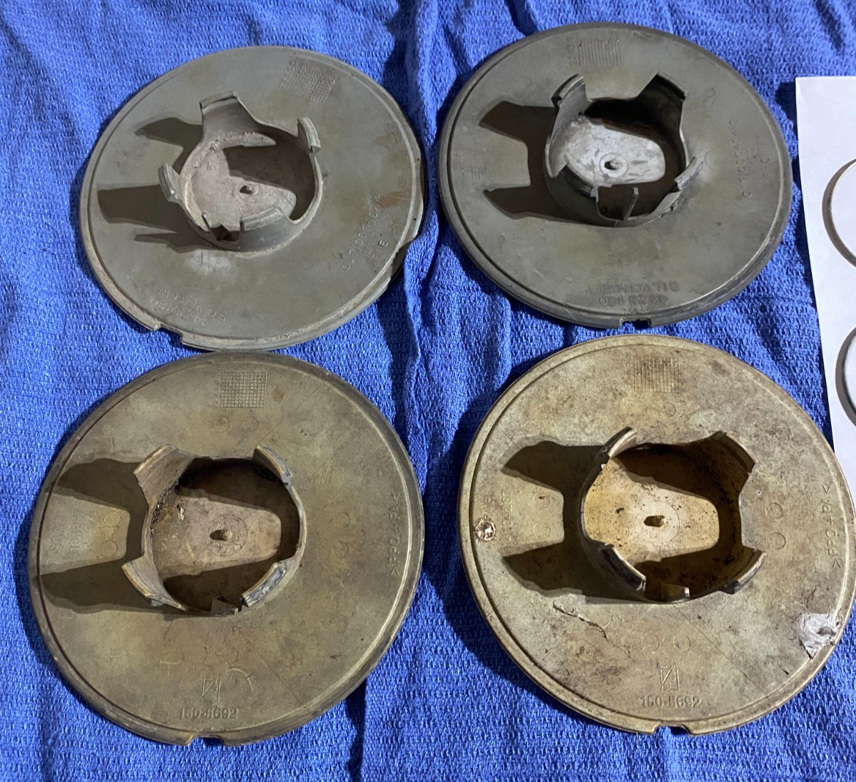 Saab O.E. wheel cover/ hub cap 6 inch. For mounting on Alloy wheels. Set of 4. Includes 4 wire rings for mounting. These will need to be painted to look good but are fine for a daily driver. Some of the set are marked SILVER, others are marked SILVER-GREY Contact seller for appointment to come and shop parts from the barns, yard, basement, and storage vans. Seller is liquidating the inventory of Pellegrino's Saab Repair shop in Ithaca, NY. D1L