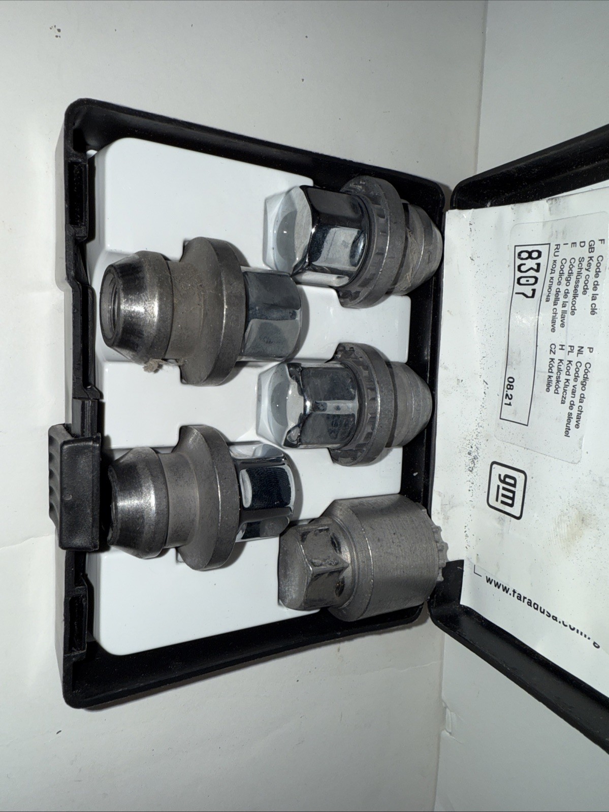 This is a genuine GM part #85548789 OEM Thatcham Catagory 4 certified wheel lock set. It includes 4 lug nuts and a key all set in the factory holding case. The lug nuts have an M14x1.5x49.9 size and a 14mm thread size. The wheel lock set is made of steel with a chrome finish. It is a super high quality part that is Thatcham Catagory 4 certified and has a universal fitment for GM with that lug size. The manufacturer is General Motors and it is made in Italy. These were from a GM vehicle such as a Tahoe Yukon Denali Escalade, Silverado Sierra. Free shipping.