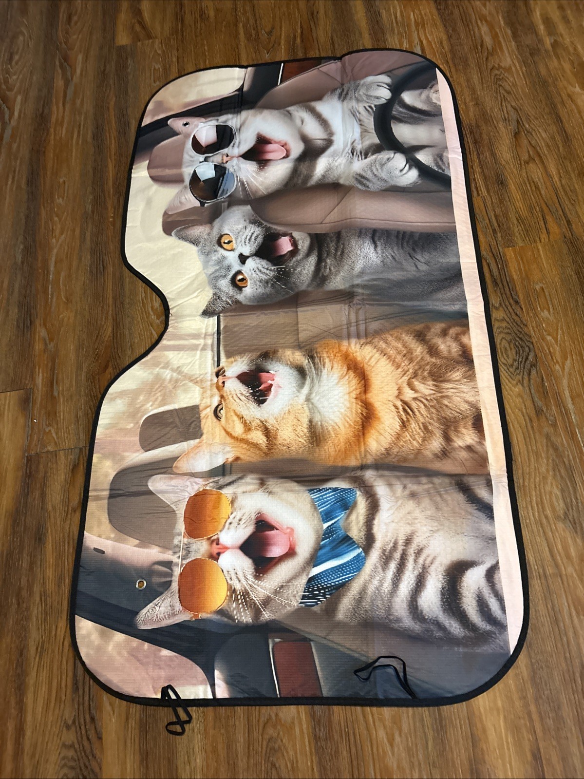 The Windshield Protector Funny Cat Wearing Glasses Car Windshield Cover is a unique and entertaining accessory for vehicles. This single-piece cover features a cute cat wearing glasses, adding a playful touch to your car while also serving as a functional windshield cover. With universal fitment suitable for vans, SUVs, trucks, and sedans, this product is designed to provide protection from the elements while making a fun statement on the road. Easy to install with included straps, this windshield cover is a quirky and eye-catching addition to any vehicle.