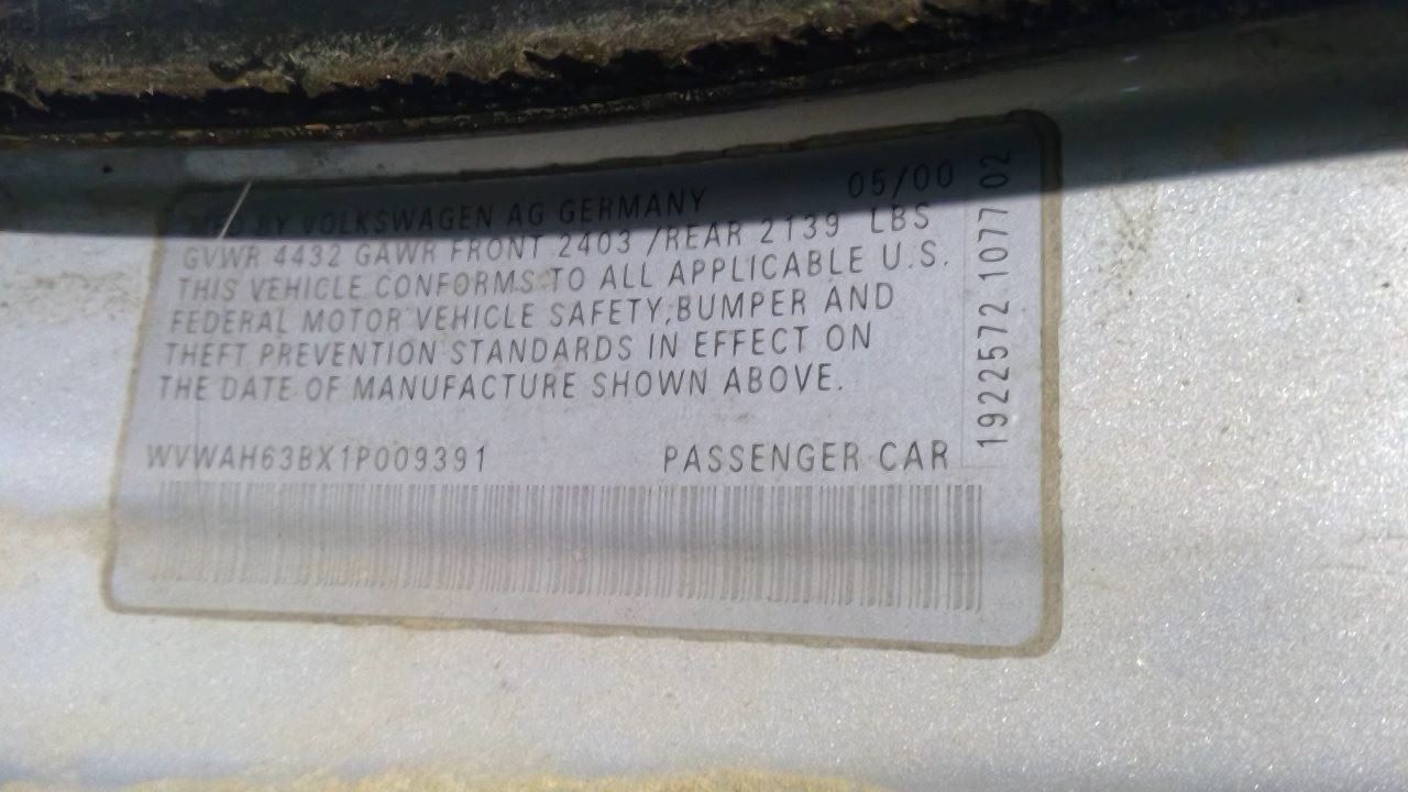 - VIN #: WVWAH63BX1P009391