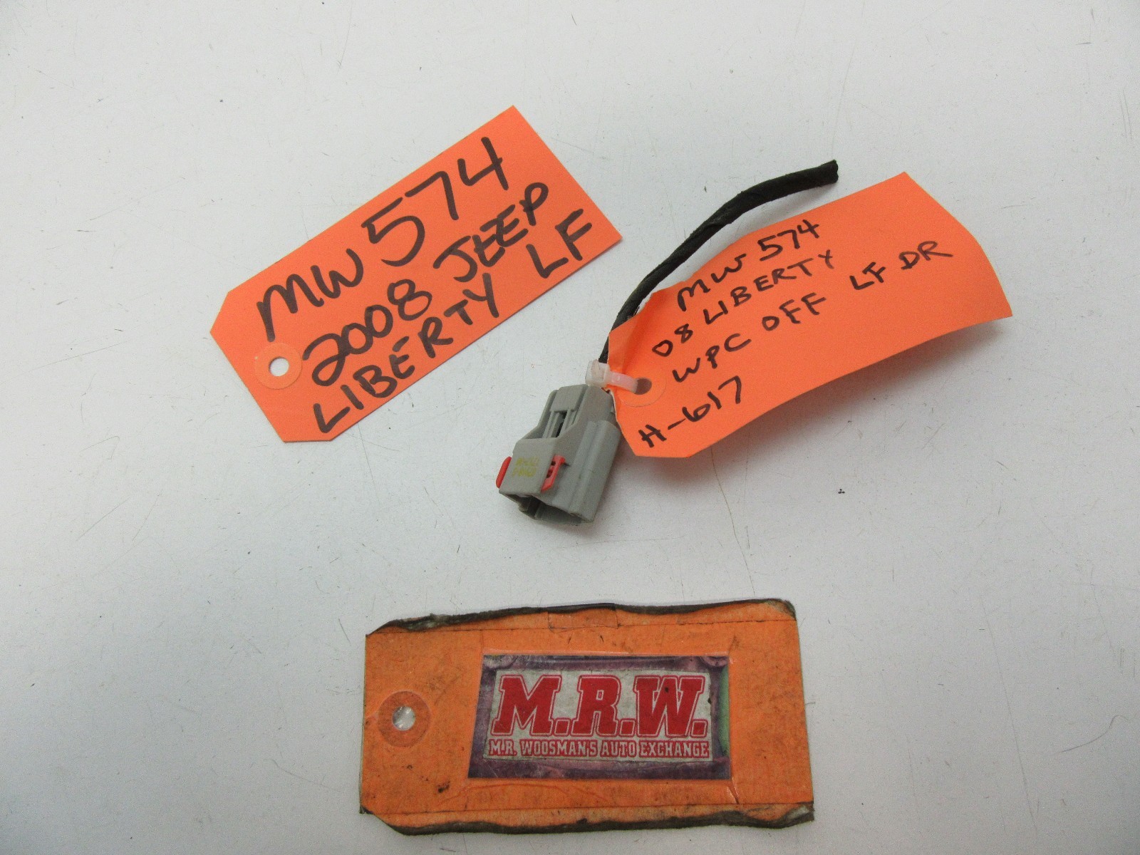 **YOU ARE LOOKING AT ONE USED** **WIRE & PLUG CONNECTOR ONLY, AS SHOWN IN THE PHOTOS. IT IS OFF THE POWER WINDOW MOTOR.** **IT WILL FIT LEFT/RIGHT OR FRONT/REAR.** **IT IS OUT OF A 2008 JEEP LIBERTY.** **IT FITS:** **08-12 LIBERTY WITH 2 PIN CONNECTOR ONLY** **07-11 NITRO WITH****2 PIN CONNECTOR ONLY** **IT IS USED BUT IN GOOD CONDITION.** **IF YOU HAVE ANY QUESTIONS PLEASE ASK PRIOR TO BUYING. ALL SALES ARE FINAL. WE SELL EVERYTHING AS-IS, NO RETURNS. LOOK FOR MORE GREAT ITEMS IN OUR STORE. THANK YOU FOR YOUR BUSINESS! MRW488 STOCK# MW574 (LF) OR MW574 (RF) OR MW574 (RR) OR MW574 (LR) HOLLANDER# 617-** **\*\*\*\*PART IS PULLED OUT AND READY TO SHIP! The free listing tool. List your items fast and easy and manage your active items.