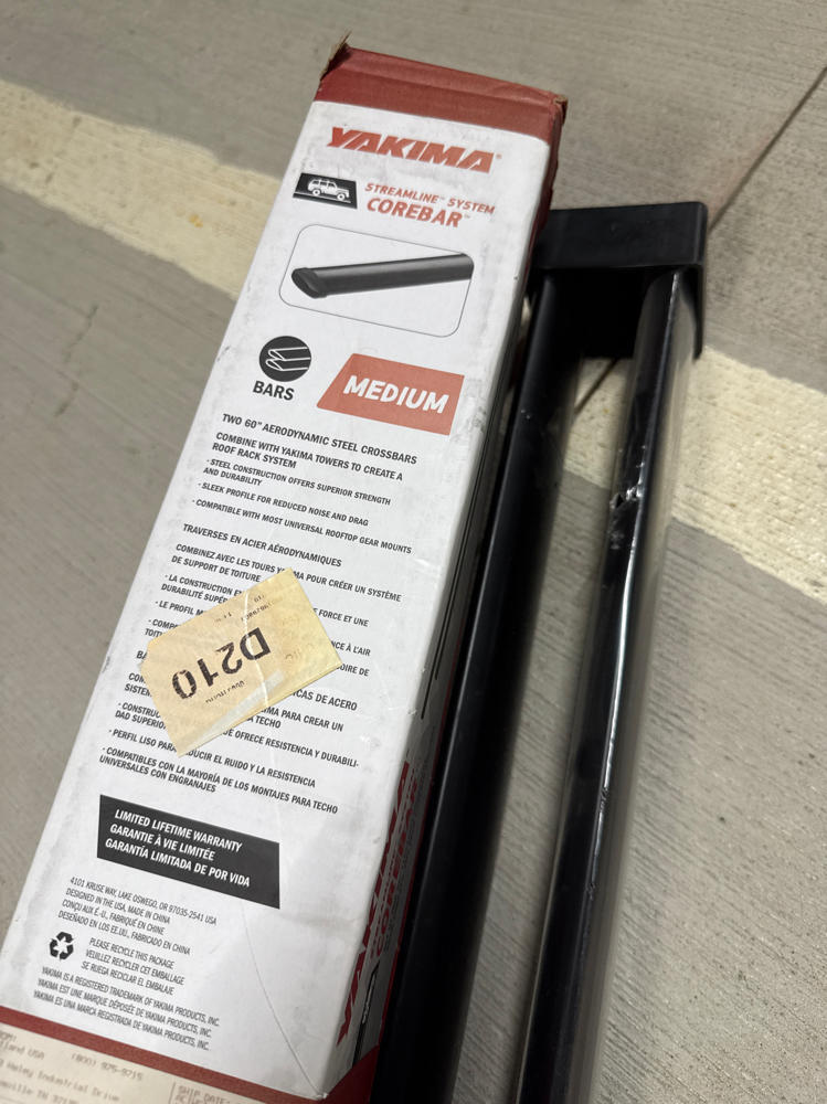 ### Yakima Streamline System CoreBar Medium 60” \#8000422 - READ w/ corebar adapters YOU RECEIVE EXACT ITEMS SHOWN! Yakima Streamline System CoreBar Medium 60 #8000422 ONE BAR IS . THE OTHER BAR IS USED WITH MINIMAL TO NO SIGNS OF WEAR. Please see the pics. THERE ARE NO CRACKS OR DIVOTS IN VINYL, EUC CONDITION! Please see the pics for more details. Yakima 8000422 CoreBar Medium (60") Cross Bars The Yakima 8000422 CoreBar is the first aero bar built with roll-formed steels strength, utility and durability offering modern aerodynamics with old-school muscle. Comes with 2 crossbars and 4 end caps Wind tunnel tested JetFlow teardrop shape is strong, quiet, exceptionally aerodynamic and offers better fuel mileage Roll-formed galvanized steel delivers proven load-bearing performance Sleek aerodynamic design looks awesome on your cars roof Vinyl wrapped for durability and corrosion resistance Compatible with all StreamLine System Towers #### Features * * * #### Details * * * - Shipping Weight: 0.0 pounds - Item MPN: 8000422 Fast Shipping at the Lowest Prices! Order are packed the following day they are recieved in most cases! Orders placed on Friday during the day will be shipped out Monday. We've tried our best to advertise honest, fair, and low-cost shipping. This includes the ability to combine shipping on orders from our store. If you feel as though the shipping charge or the combined shipping charge is too high, please contact us with your concerns in order to get you the best agreed upon price! If you'd like expedited shipping, and it is not available, please reach out directly! Competitive FLEXIBLE Pricing! With our dynamic pricing model, our prices are always competitive. If you have a question or would like to discuss pricing more, reach out directly! Offers are more than welcome even if not available through listing, just send a message and let us know of your interest! 30-day Money Back Guarantee We are committed to making sure that you leave this transaction satisfied. If you're unhappy with the product for any reason, you may return it back for your money-back. Please see specific return policy relevant to the item your viewing! (Original shipping costs will not be refunded unless seller is responsible for mistake)