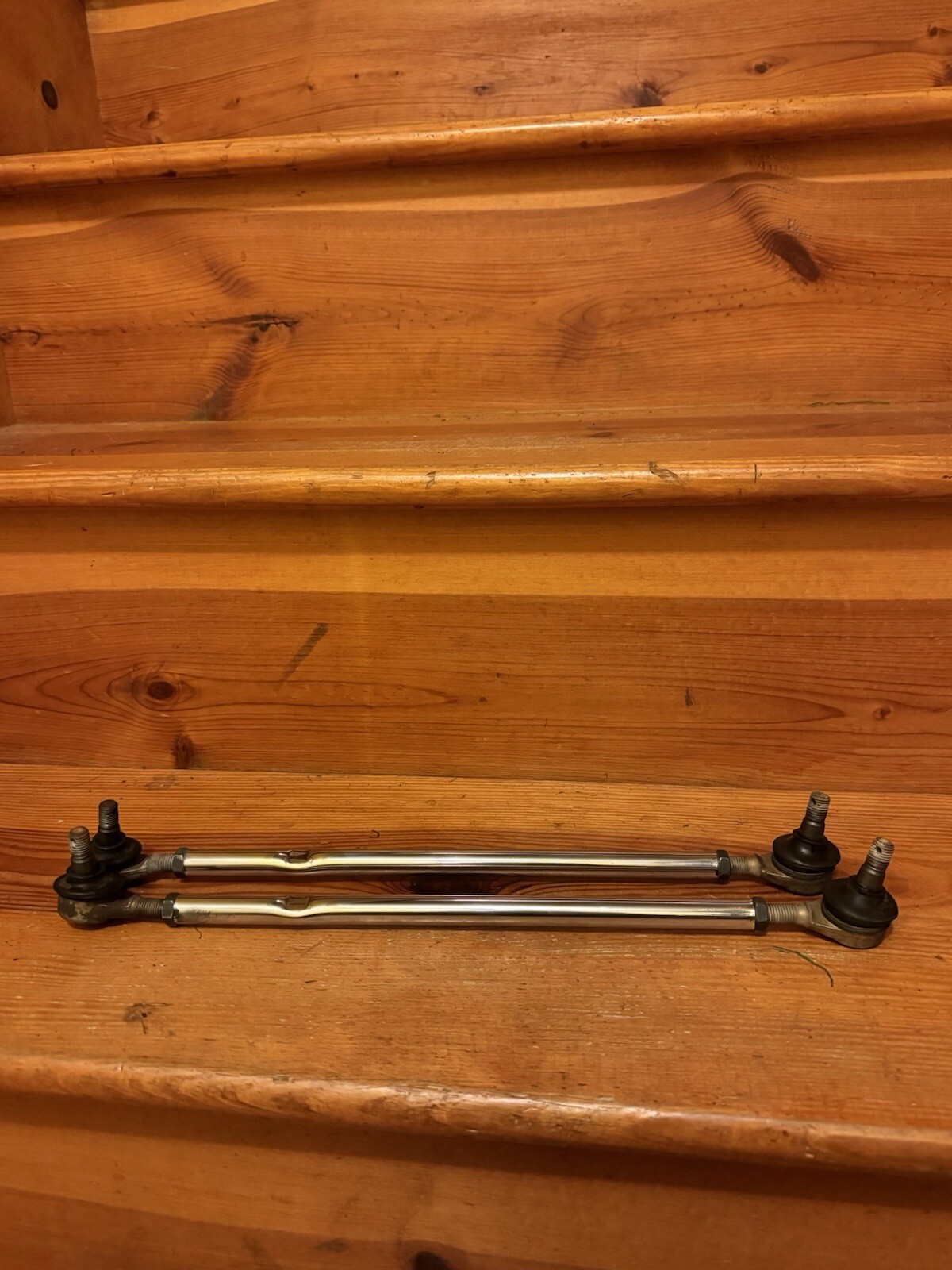 Very Nice Straight Oem Chrome Plated Tie Rods ! With good Oem tie rod ends ! Very nice set ! Good threads , no play in tie rod ends ! No rips in boots ! Chrome looks excellent condition! No flaking or peeling , very minimal fad . Pictures do not do justice! Won’t disappoint!