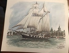 "Tall Ships" Ben Babelowsky 1984 Set of 4 Watercolor Prints with Signature. All 4 prints are signed with description by artist and are suitable for framing. Prints are described as of tall ships on St. Lawrence River. Please see pictures for more details. Size of prints are approx. 12.5" x 14.5",