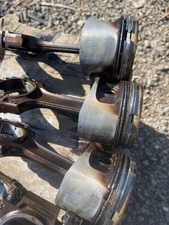 this is a used set of pistons and rods that need a super good cleaning before use. please check the pictures. no spun bearings. they been sitting for a while this came out of a 04 tsx this is a used set please don’t expect it to be no there will be some scuffs and scratches