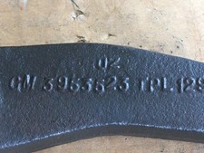 A used GM, pitman arm casting # 14074905 Unable to pinpoint an exact GM application for reference. 7 1/4" overall length, 1 1/8" large splined hole, 5.4" holes ctr to ctr approximately. Some online reference said it is used with GM steering boxes, 525,605,600. Weight 2 lbs 6 1/2 oz.