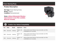 1979 Cadillac Eldorado 5.7L V8 DIESEL. 1979 Cadillac Eldorado 5.7L V8 GAS. 1975 Cadillac Eldorado. 1976-1978 Cadillac Eldorado. Notes: Remanufactured Power Steering Pump -- Without Reservoir. Premium-quality remanufactured power steering pump designed for dependability.