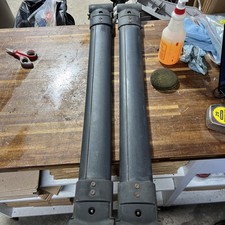 The 2000-2004 Subaru Legacy Outback Roof Rack Cross Bar Set is a genuine OEM product made by Subaru in Japan. This set includes cross bars in black color with a length of 36"-37" and all necessary mounting hardware for attachment. The cross bars are designed specifically for raised roof rails and are not universally fitting, making them a vintage part that meets the original equipment manufacturer standards. Ideal for carrying extra cargo and gear on the roof of your Subaru Legacy Outback, these cross bars offer a secure and authentic solution for your vehicle's roof rack system.