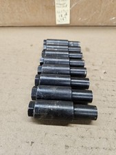 The product is a set of 8 long Stud girdle poly locks with a 7/16" stud, 2.5" long, and a 3/4" diameter shaft. These rocker arm nuts are designed to secure rocker arms in place on a vehicle's engine, providing stability and preventing wear. The poly lock material ensures a secure grip and durability, making it an essential component for maintaining proper valvetrain function in a car or truck. GOOD USED CONDITION. ALL THE SAME SIZE, TWO DIFFERENT BRANDS. #105HOWARD