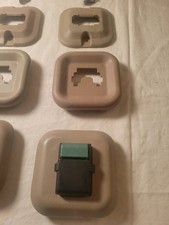 The product is a set of rear seat clips designed specifically for Ford Expedition. They are commonly put onto Ford Excursions for an upgrade to the velcro oem seat retainers. The clips are in a beige color, matching the interior of the vehicle. They are intended to be placed behind the rear seats, providing additional support and safety for passengers in the second row of the vehicle. These clips are genuine Ford products, ensuring a perfect fit and quality construction for your vehicle. You will receive everything pictured including the mounting screws. These are used parts and show some wear but are in good working condition.