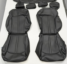 Fits: 2021-2025 Ford Bronco 4 Door Full Size Badlands/Black Diamond/Big Bend/Sasquatch. Color: Black with contrast stitch and Bronco logo on lean backs. This is an OEM Factory Take-off. I believe it is leatherette/high grade vinyl material inserts.