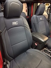 Complete set of rough country neoprene seat covers for 4 Door JL. 2018 x 2025. These are for the rear seats without the fold down armrest. Covers are used but in good condition. No rips or tears. Front passenger side bottom is a little stretched out ( see pic) but still functions fine.