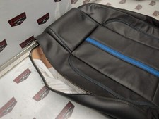 OEM right front upper seat black leather w/ Grabber Blue stitching removed from a 2012 Ford Mustang GT. Side stitching is blown out. 2012 Ford Mustang GT. 2010-2013 Ford Mustang. Columbia Station, OH 44028.