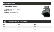 1990 Lexus ES250. 1991 Lexus ES250. Part Type: Mass Air Flow Sensor. Remanufactured Mass Air Flow Sensor. Air Flow Sensor. Sensor Type: Resistor. Ensure that this part fits your vehicle by entering your vehicle's Year, Make, Model, Trim, and Engine in the Compatibility Table.