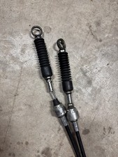 Here is a set of Volvo 850 shifter cables they fit 93-98 Volvos 850, s70, v70, c70 with manual transmissions. These are a hard to find part that is no longer available new and is necessary for manual swaps. These cables were bought new in 2015 and installed with a manual swap. These are in really great condition outside of the boost being torn on trans side. Looks like enough material to reclamp and repair / still elastic rubber to sustain the repair. I had another new old stock set, so I swapped the out. The rubber bushings are missing as these had spherical bushings in them. Many people go that route, 608 ball bearings or the brass or stainless steel inserts. Either way, great condition despite the tear and loose end.