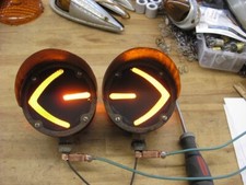 2 Grote 240 Turn Signal Lights remanufactured with new light socket repair kits and 12 Volt bulb Old Green Painted Housing. Can be 6 volts just change the bulbs.