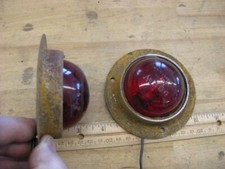 2 Do Ray Rat Rod Marker Lights with new light socket repair kits and 12 volt bulbs Red Glass Lens Rusted housing 4" OD.