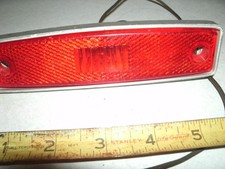 The 1971-76 Dodge Truck Side Marker Lens is a vintage part made in the United States by Dodge. This OEM side marker light assembly features a red lens and screws for mounting. It includes bulbs and has a smooth finish. The part is tested and confirmed to be in good working order, making it a reliable choice for restoring or repairing a classic Dodge truck from the specified years.