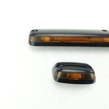 This is a used cab marks light set from a 2010 Chevy Silverado. The center lights power connector clip is broken. The lenses of all the lights have cracks. Item sold as is.