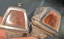 2 Do Ray Rat Rod Marker Lights with new light socket repair kits and 12 volt bulbs Amber Glass Lens Rusted housing 4" OD.