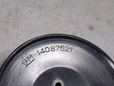 For sale is a used Smog Pump Pulley suitable for various 1985-1986 Chevrolet model vehicles. It bears the part number 14087006 and the GM logo on its front face.
