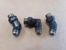 These fittings are used but in good condition. These are the 3 fittings that screw into the pump manifold on one end and into the 3 hoses on the other end. There are two 56726 45° fittings and one 56725 90° fitting.