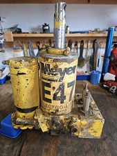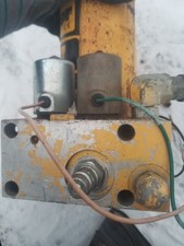 Meyer E-57 snow plow assembly. This is for parts or repair as I didnt test it. The ram is not frozen. The lower mounting tang is cracked, it could be repaired. Please be aware of condition before purchase.