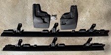 This auction is for a set of Jeep JL Factory Rock Rails with WeatherTech Mud Flaps in black color. Made of steel, the rock rails come with NO mounting hardware(you just have to buy some nuts and washers-stainless recommended) , but easily bolt-on installation on the left and right sides of the vehicle. The matte finish adds a sleek look to the durable and reliable rock rails, providing additional protection for the vehicle while driving off-road. The Weather Tech front mud flaps come with used mounting hardware. The rails and mud flaps were used for about 2 years and show normal wear. Pickup only. Let me know if you have any questions or need more pictures.