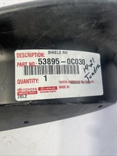 The Toyota Tundra Front Passenger's Side Fender Liner is a genuine OEM part designed specifically for models from 2014 to 2021. Made by Toyota, this black fender liner features both the front and rear parts, perfect for protecting your vehicle's lower front right area from dirt, rocks, and other debris. With the manufacturer part numbers 53875-0C070 and 53895-0C030, this fender liner ensures a precise fit and high-quality construction for your Toyota Tundra.