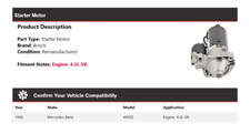 Bosch Premium 100% Remanufactured Starter. Starter (Remanufactured). Bosch Premium Starters are designed and built and tested to provide the ultimate in performance and reliability. Starter Motor. Reman Starter.