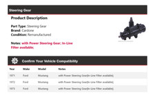 Power Steering Gear; Steering Gear; Gear Box. Notes: with Power Steering Gear; In-Line Filter available;. Part Type: Steering Gear. Pwr Steering Gear. Remanufactured Steering Gear. 1971 Ford Mustang with Power Steering Gear; In-Line Filter available; ;.