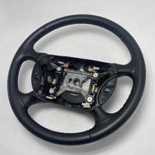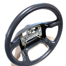 "Does not include center pad/airbag assembly" Original, lightly used 4-spoke leather steering wheel fits Chevrolet and GMC trucks and vans, including C1500-series Sierra and Silverado, S-10, Suburban, Tahoe and Yukon (1996 1997 1998). Wheel shows minor surface blemishes with stitched leather rim and no damage. Sourced from a 1997 Chevrolet Suburban. Free shipping.
