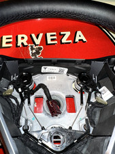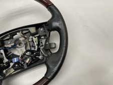 This steering wheel is in good, used condition. No tears in the leather, no peeling, and stitching is in great shape. It contains the OEM scroll wheel controls, but no airbag module is included.