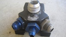 It has 7 orifices; three 8AN threads, one12AN threaded, one 10AN flare and two 3/8 NPTs. Includes 4 fittings: 12AN plug, two 8AN flares, one 6AN flares. This Y block is machined from billet aluminum, includes a 4 bolt hole mounts.