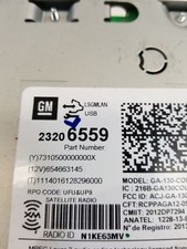 Radio Receiver, CD Player 23206559. MALIBU 16 VIN 1 (4th digit, Limited), receiver, AM-FM-single CD-MP3-USB (opt UFU). MALIBU 14-15 receiver, AM-FM-single CD-MP3-USB (opt UFU). CAPRICE 14 receiver, (MyLink), (AM-FM-CD-MP3, opt UFU).
