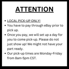 We accept credit card and cash for Local Pickup orders. This Part Will Fit These Makes And Models With These Options. Labor and costs associated with part installation are not included in the warranty, parts only.